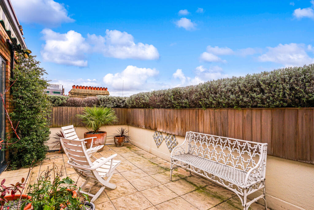 This spacious penthouse with private lift access directly into the apartment, allocated gated parking, two bedrooms, two shower rooms and a spectacular roof terrace with unrivalled views. Available now.